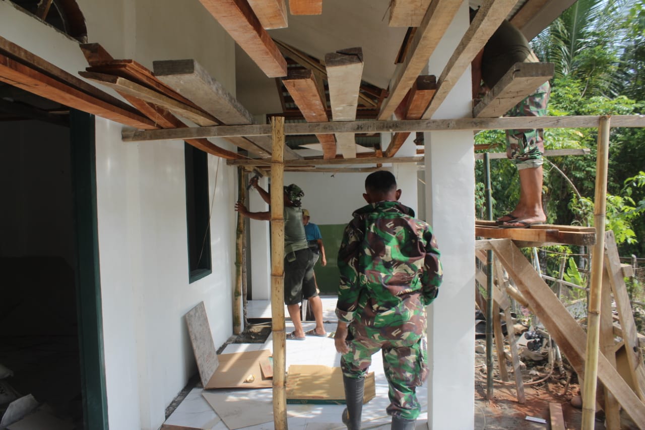 Pekerjaan pembagunan Mushola yang dipimpin langsung Serma Made dan dibantu puluhan anggota satgas yang tergabung dalam TMMD 118 Kodim 1305/BT berjalan sesuai yang diharapkan.