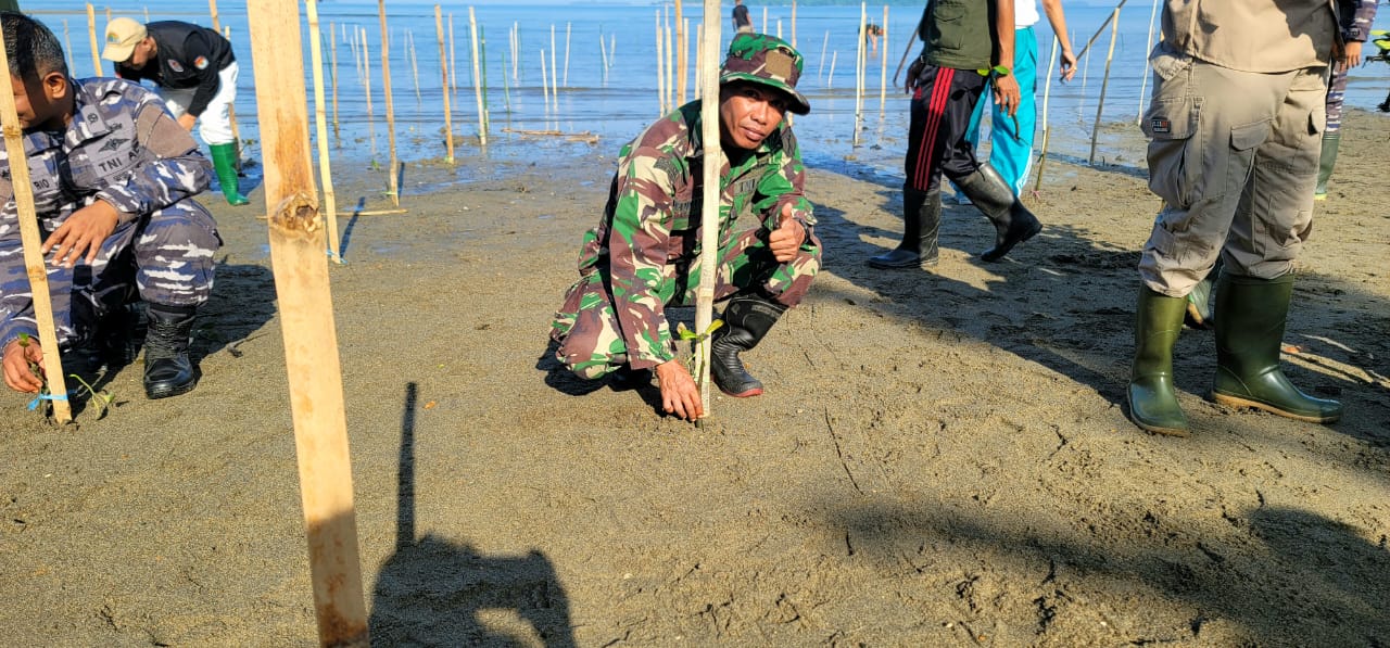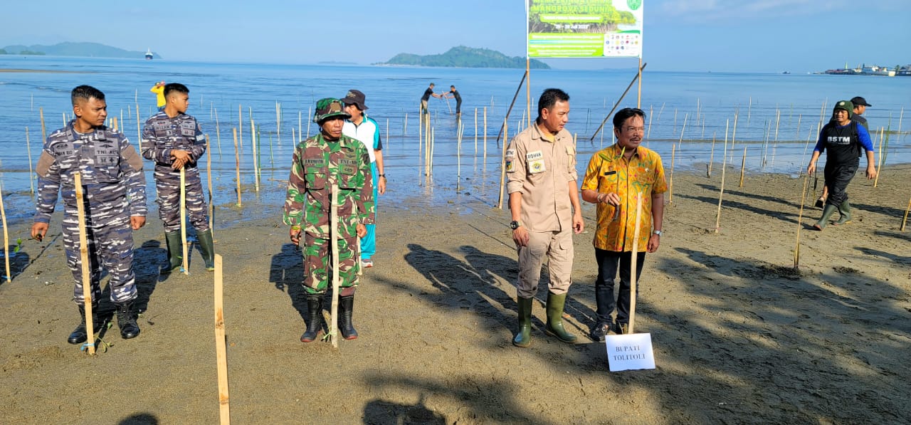 Kodim1305/BT, Sulteng | Kabartoday.id – Pasiter Kodim 1305/BT Kapten Inf Daryanto Mamonto mewakili Dandim 1305/BT melaksanakan kegiatan Penanaman Pohon Mangrove di Kawasan Pesisir KM 2 Kelurahan Sidoarjo dan Kawasan Pantai Susumbolan Tolitoli, Jumat (28/07/2023).