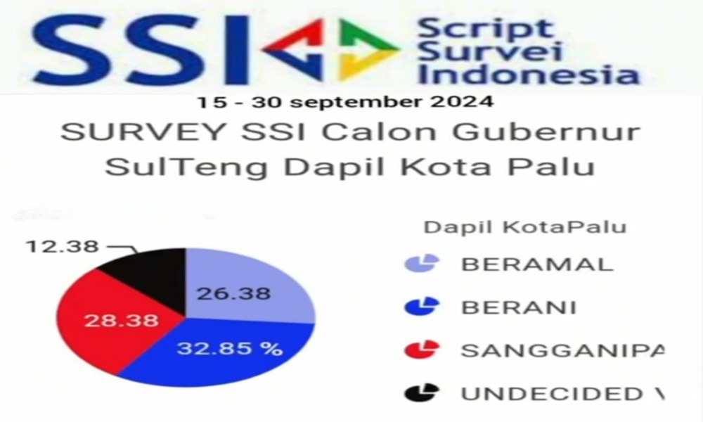Palu, Sulteng | Kabartoday.id – Lembaga Script Survei Indonesia (SSI) kembali merilis hasil survei Pemilihan Gubernur (Pilgub) Sulawesi Tengah (Sulteng) terbaru Periode 15 hingga 30 September 2024.