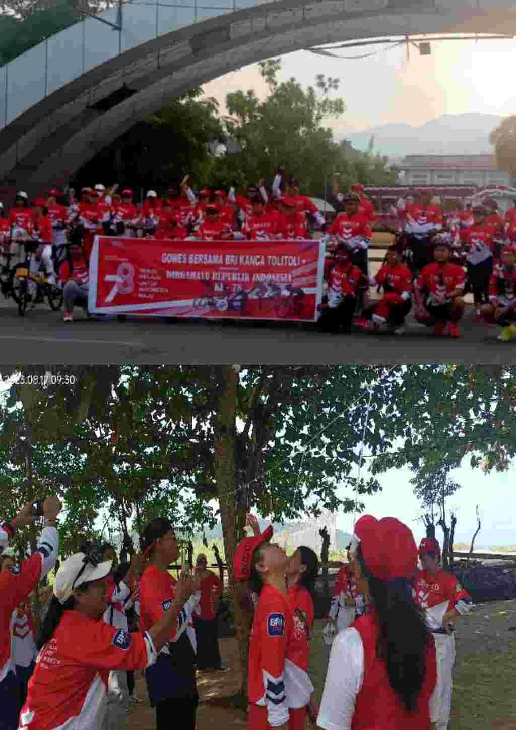 “Kemesraan antara pegawai Bank BRI Cabang Tolitoli, Pemda Tolitoli dan Nasabah BRI ditunjukkan dihari Kemerdekaan Republik Indonesia tahun 2023 ini dengan ikut bergabung dalam rangkaian kegiatan Gowes Kemerdekaan, Membentangkan Bendera Merah Putih sepanjang 78 Meter, Lomba-Lomba dan Ramah Tamah,” Ungkap Ryan Kosasih Raharja.