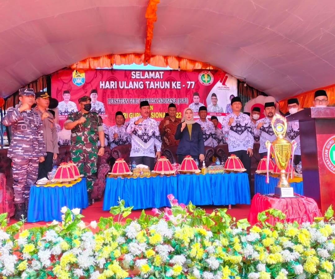 Diakhir sambutannya Bupati Tolitoli bersama unsur Forkopimda kabupaten Tolitoli juga bersama sama mengucapkan selamat Hari Guru Nasional yang ke 77. ***
