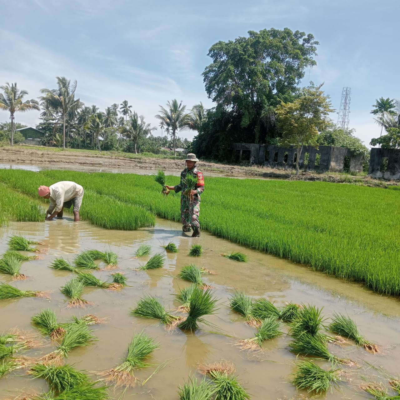 Kodim1305/BT, Sulteng | Kabartoday.id – Babinsa Kalangkangan Koramil 1305-11/Galang Kopda Nasri membantu petani mencabut dan memindahkan bibit padi yang siap untuk ditanam di lahan bekas Asrama tua Kipan C Yonif 711/Rks seluas Kl 80 Are