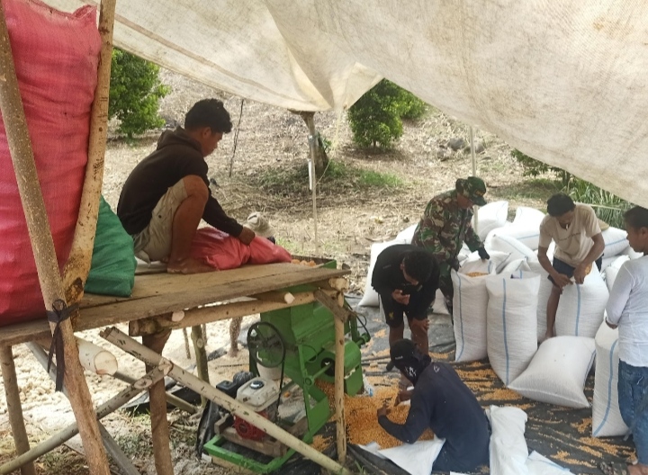 Serda Moudy Kaloh terlihat aktif terlibat dalam setiap tahapan kegiatan, mulai dari pengumpulan hasil panen hingga proses perontokan jagung. Kehadiran Babinsa di tengah-tengah petani tidak hanya menjadi penyemangat, tetapi juga mencerminkan kepedulian TNI terhadap kesejahteraan masyarakat, khususnya di sektor pertanian.