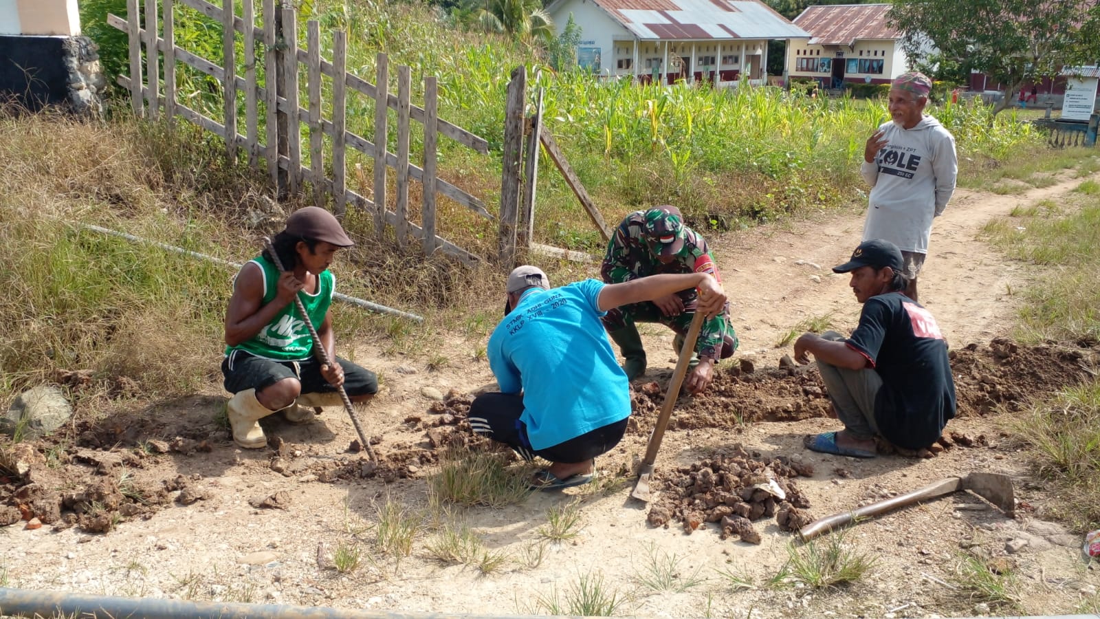 Jaringan Pamsimas Masuk Desa, Babinsa Tikopo Koramil 1305-09/Bokat Ikut Kerja Bakti