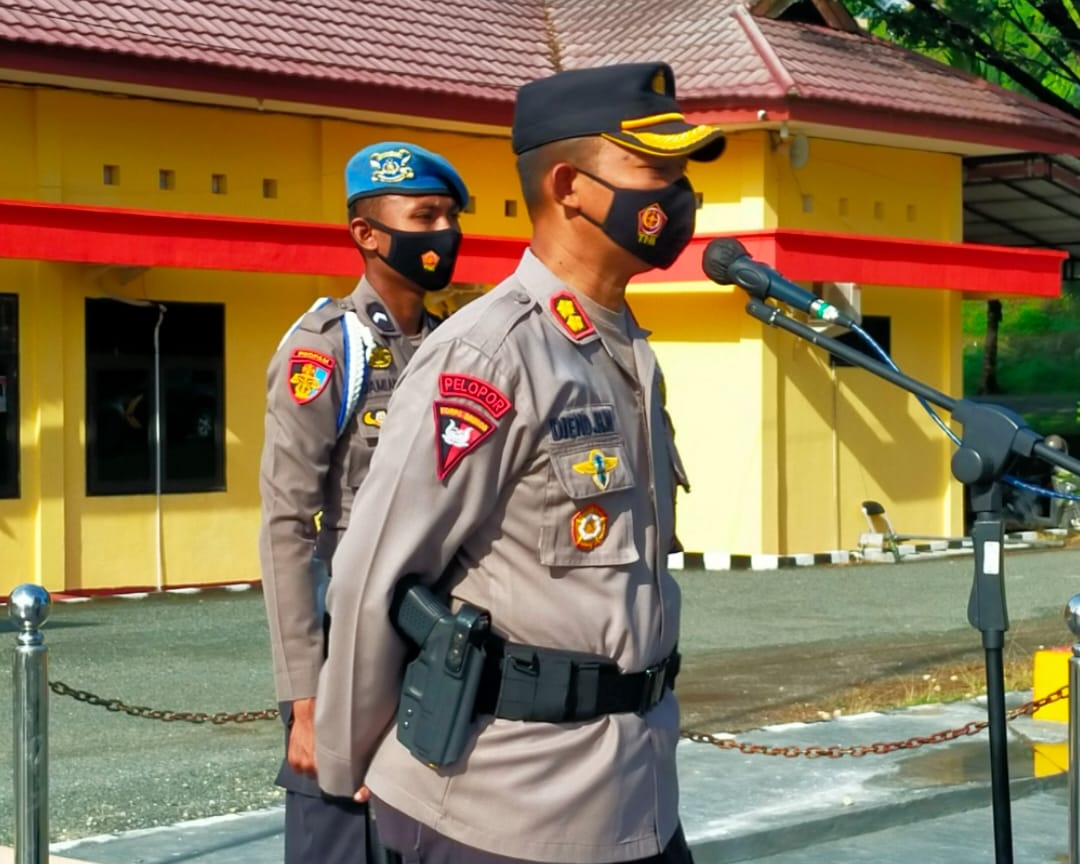 Buol, Sulteng | Kabartoday.com – Kapolres Buol AKBP Dieno Hendro Widodo, S.I.K. saat memimpin apel pagi terus menekankan kepada personel polres Buol untuk lebih memperhatikan Anjuran Pemerintah yang telah memberlakukan Pembatasan Pemberlakuan Aktivitas Masyarakat, pada Senin (12/7/2021)