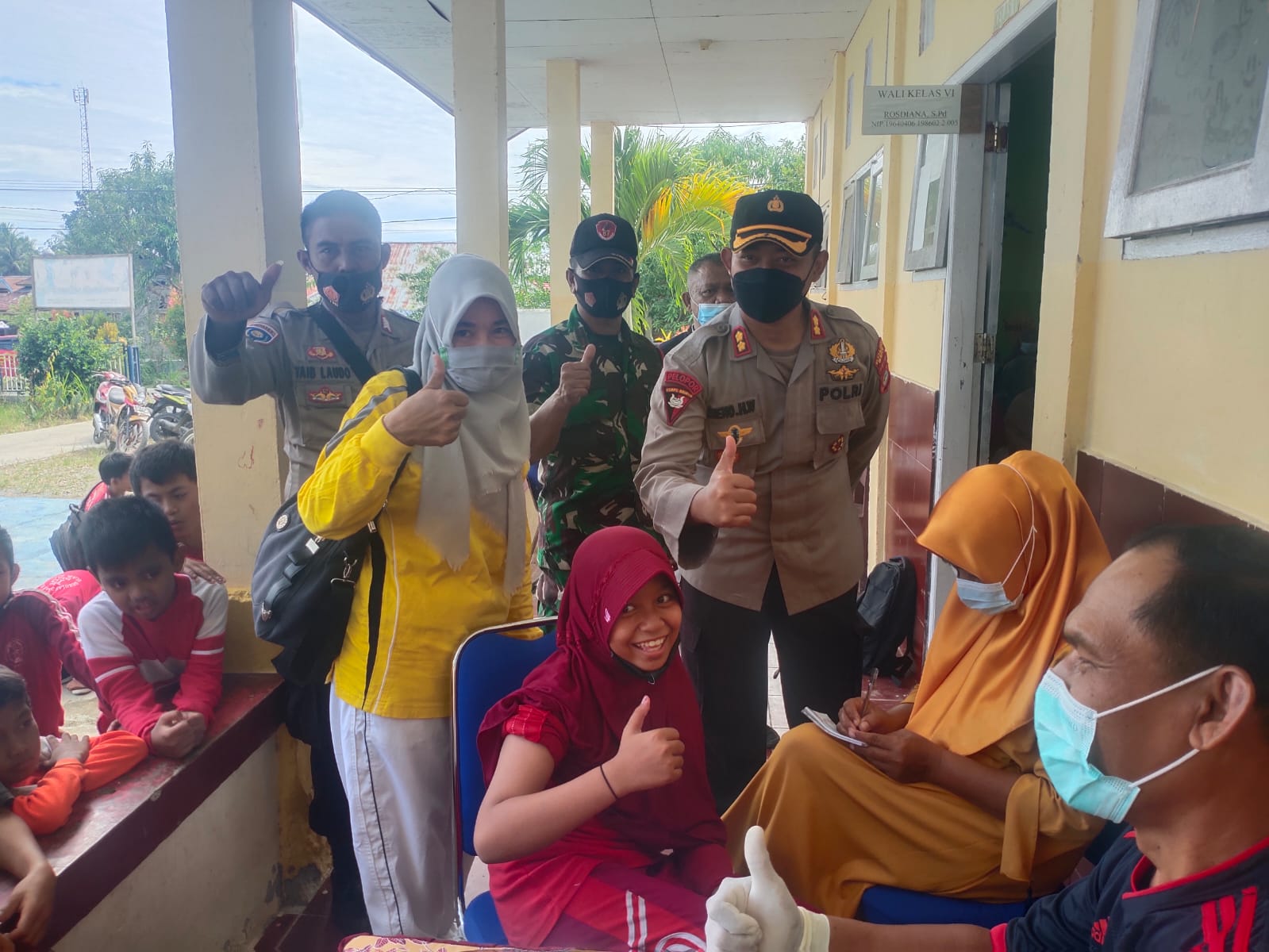 Buol, Sulteng | Kabartoday.id – Vaksinasi kepada anak Umur 6-11 tahun tak henti hentinya dilakukan oleh pemerintah bersama TNI/Polri, Seperti yang dilakukan polres Buol, Polda Sulawesi Tengah yang kembali menyasar sekolah Dasar (SD).