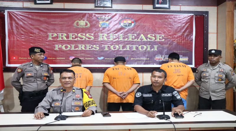 Tolitoli, Sulteng Kabartoday.id – Polres Tolitoli menetapkan tiga orang tersangka kasus pengeroyokan yang terjadi pada hari Sabtu (27/07/2024) sekitar Pukul 00.30 WITA, bertempat di Jl. Green Beach Resort Desa Sabang Kecamatan Galang, Kabupaten Tolitoli.