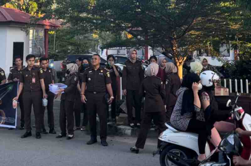 Ratusan bungkus Takjil dibagikan kepada masyarakat yang melintas di sekitar depan kantor kejaksaan menarik simpati warga untuk singgah dan diberikan bungkusan takjil.