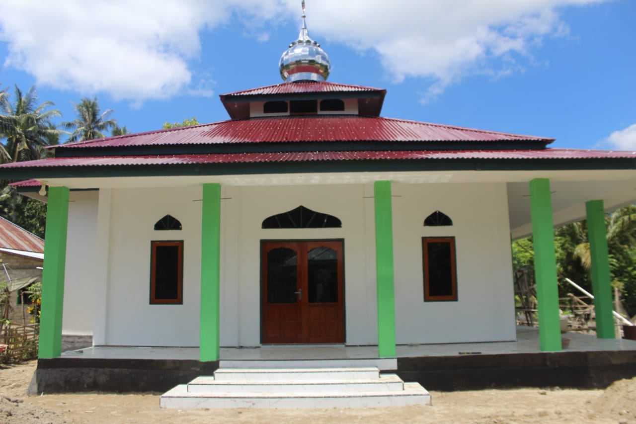Pekerjaan yang telah mencapai 100% penyelesaian, kemegahan mushola telah terlihat sangat memukau. Atap baru yang kokoh dan dua kubah cantik telah memberikan tampilan baru pada mushola. Warna Hijau yang diaplikasikan pada tiang, dan balutan dinding berwarna putih membuat mushola terlihat semakin indah dan menarik perhatian.