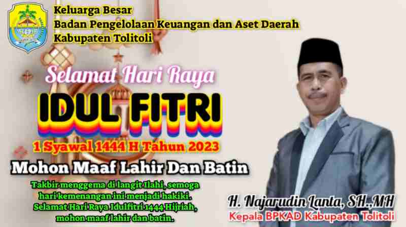 Kepala BPKAD Tolitoli : Selamat Hari Raya Idulfitri 1 Syawal 1444 H