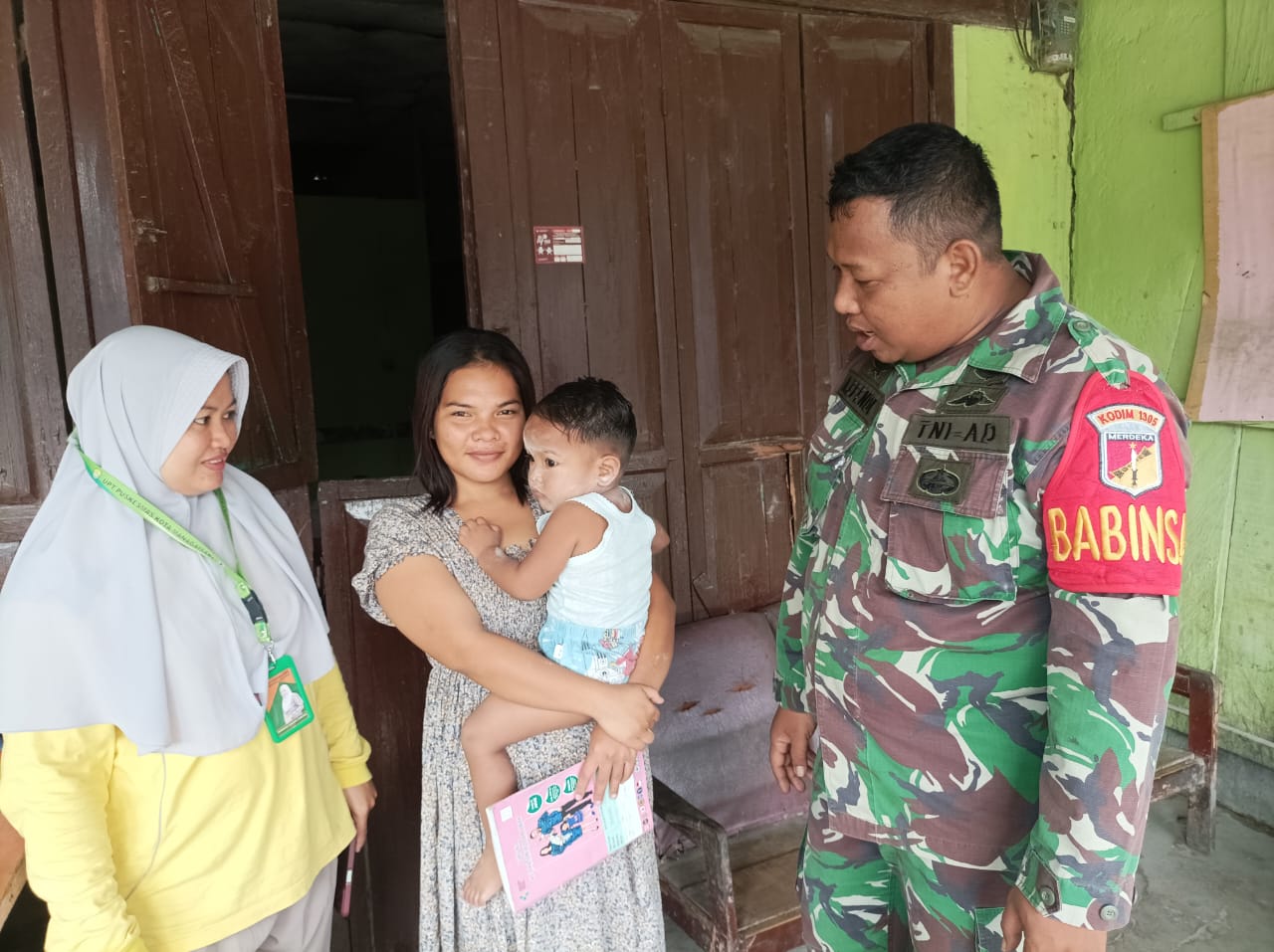 Tolitoli, Sulteng | Kabartoday.id – Dalam rangka menekan peningkatan angka stunting di wilayah kecamatan Baolan Khususnya di kelurahan Sidoarjo Babinsa koramil 1305-01/Baolan Koptu Agus Efendi bersama perawat Bidan Hasana Dan Ibu Suryati mengunjungi warga yang termasuk dalam kategori Stunting.