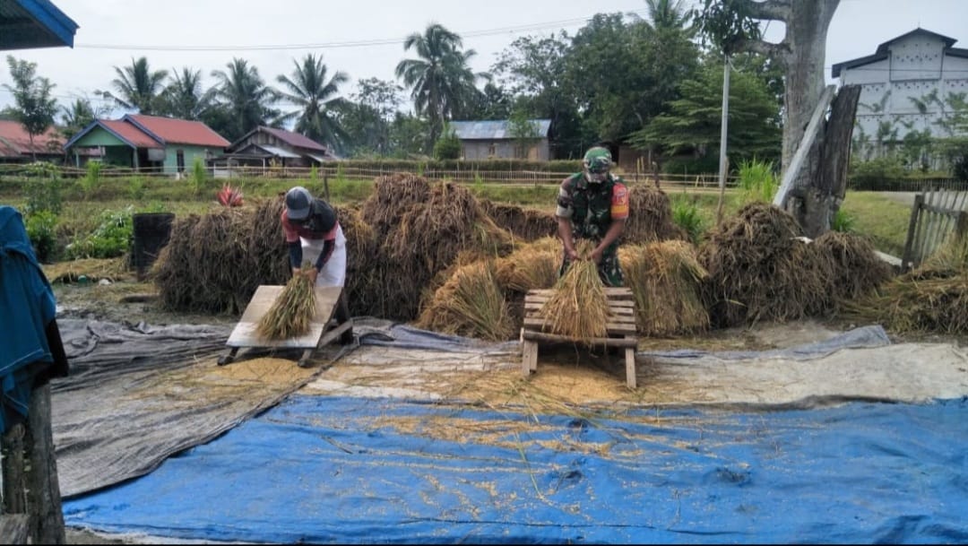 Seperti yang dilakukan Babinsa Koramil 1305-09/Bokat Serka Jufri Dj. Madukala melaksanakan pendampingan kepada para petani dalam rangka merontokkan padi secara manual.