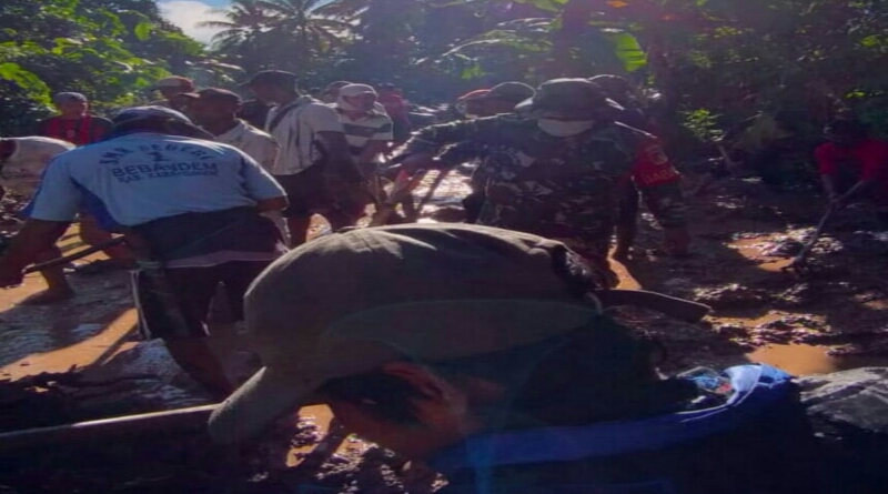 “Pagi ini saya bersama warga berjumlah 50 orang melaksanakan kerja bhakti pembersihan sepanjang sekitar 50 meter akibat longsor yang terjadi pada hari minggu pukul 20.00 wita (tadi malam),” Ungkap Babinsa Kamalu Kopda Diman