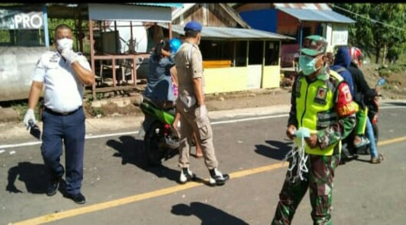 Koramil 1305-06/Paleleh Praka Yamin saat sedang bertugas di wilayah perbatasan kabupaten Buol dan Provinsi Gorontalo mengatakan pihaknya bersama anggota yang berjaga diperbatasan tidak henti hentinya memberikan himbauan kepada masyarakat untuk selalu mematuhi protokol kesehatan.
