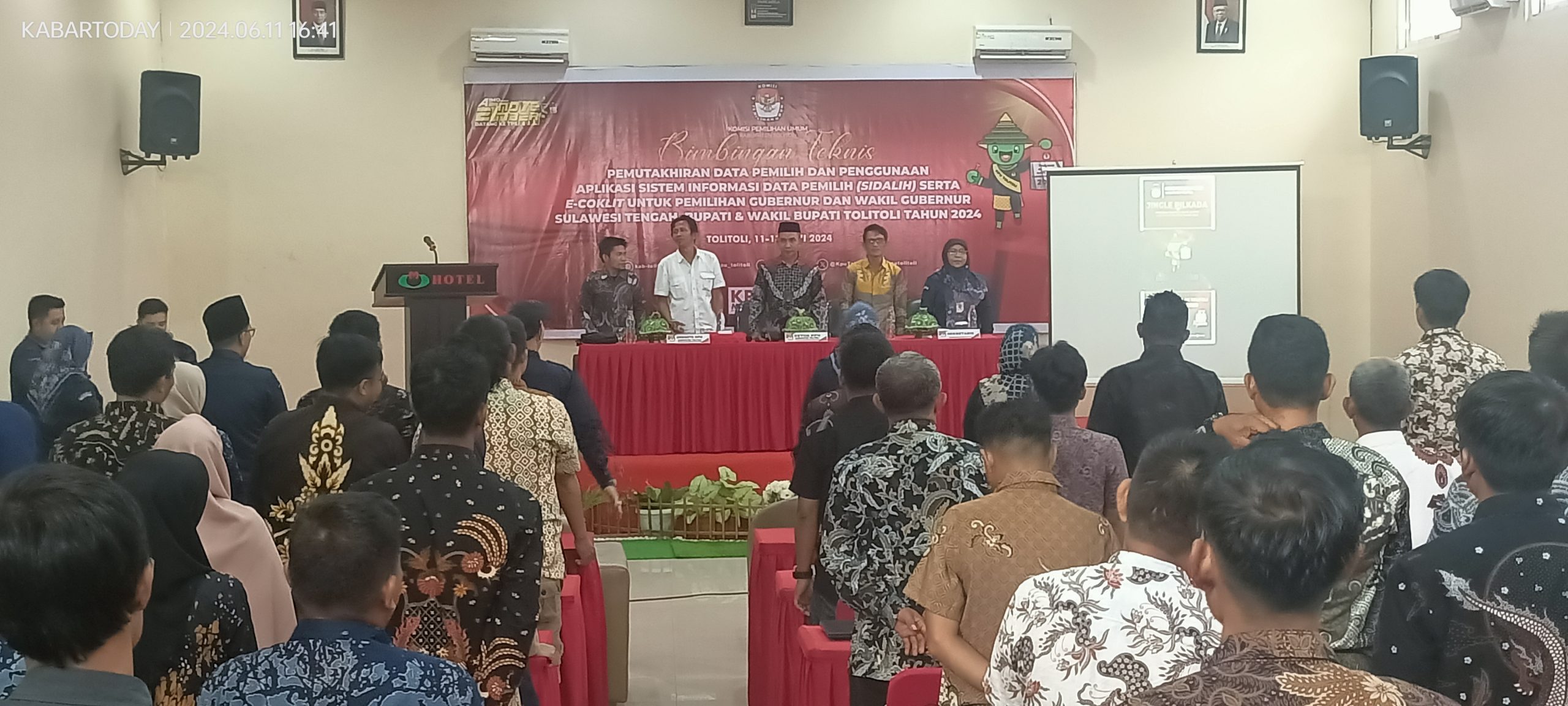 Kegiatan Bimtek Panitia Pemilihan Kecamatan (PPK) terkait Pemuhatiran Data Pemilih (PDP) dan Pengunaan Aplikasi Sistem Informasi Data Pemilih (SIDALIH) pada pemilihan Gubernur dan Wakil Gubernur Sulawesi Tengah (Sulteng), Bupati dan Wakil Bupati Tolitoli secara resmi dibuka oleh Ketua KPU Tolitoli.