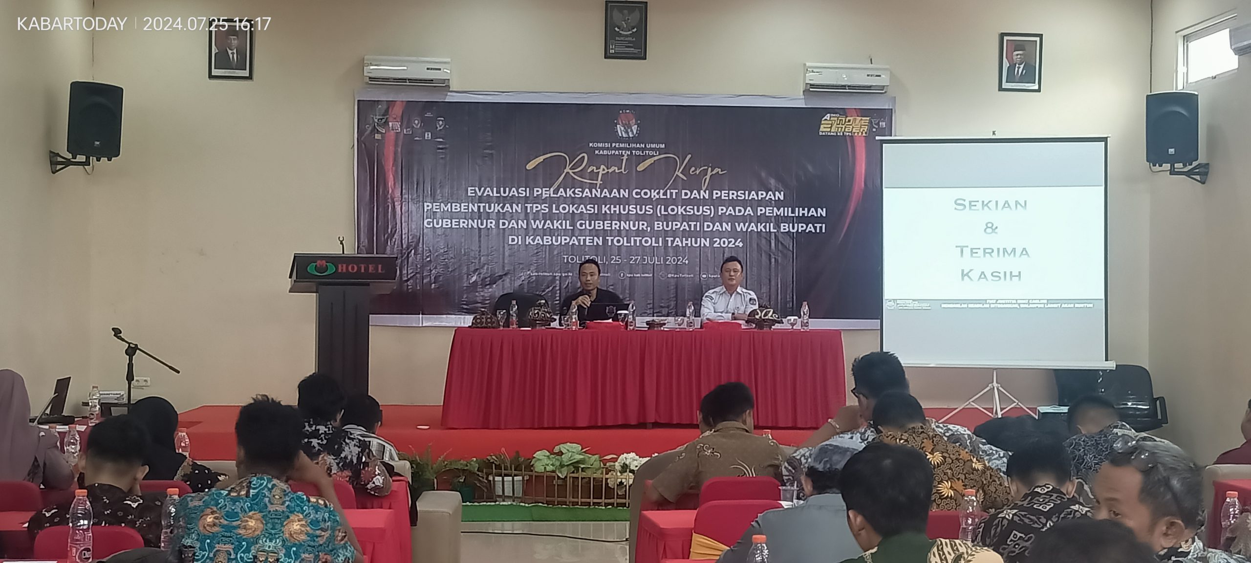 Tolitoli, Sulteng | Kabartoday.id – KPU Kabupaten Tolitoli mengelar Evaluasi Pelaksanaan Coklit dan Persiapan pembentukan TPS Lokasi Khusus (Loksus) pada pemilihan Gubernur dan Wakil Gubernur, Bupati dan Wakil Bupati Di kabupaten Tolitoli Tahun 2024. di Hotel Mitra Utama, Kamis (25/07/2024).