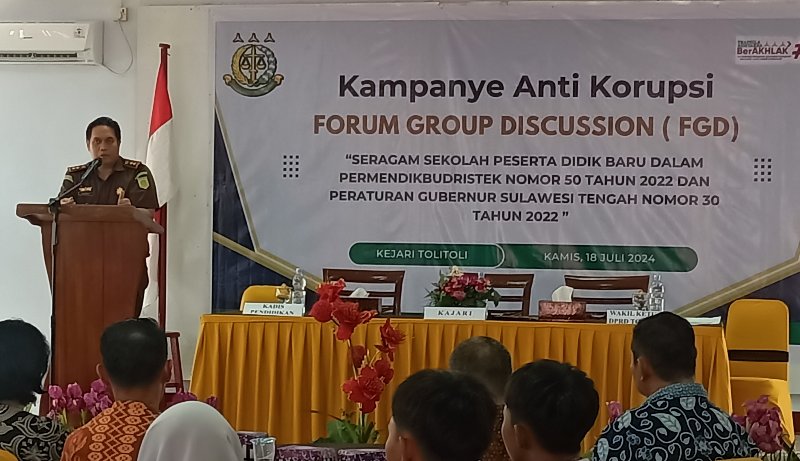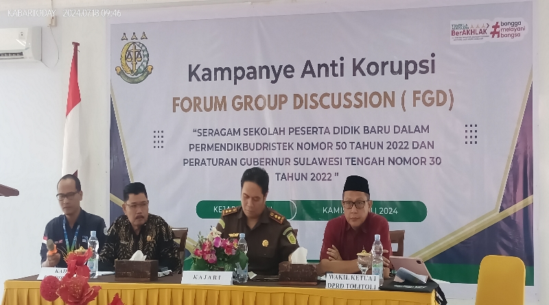 Tolitoli, Sulteng | kabartoday.id – Dalam rangka menyambut Hari Bhakti Adhyaksa ke -64, Kejaksaan Negeri Tolitoli Provinsi Sulawesi Tengah mengelar Kampanye Anti Korupsi melalui Forum Group Discudssion (FGD) bertempat di Hotel Bumi Harapan Kamis (18/07/2024) pagi.
