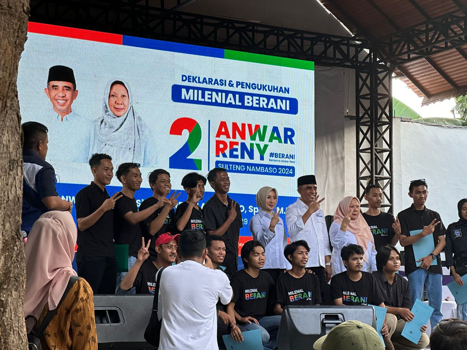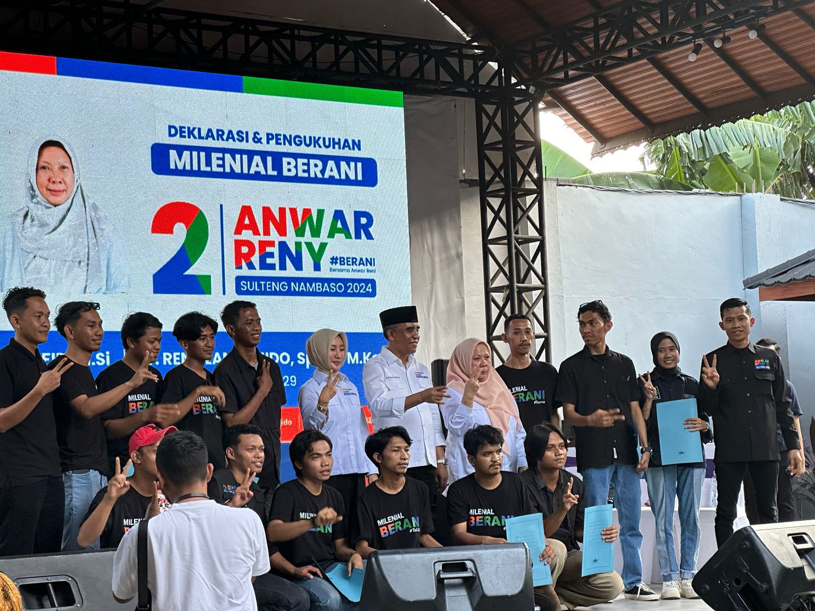 Ratusan anak muda milenial antusias hadir dalam acara tersebut, menegaskan dukungan mereka terhadap pasangan dengan tagline “BERANI” (Bersama Anwar-Reny).