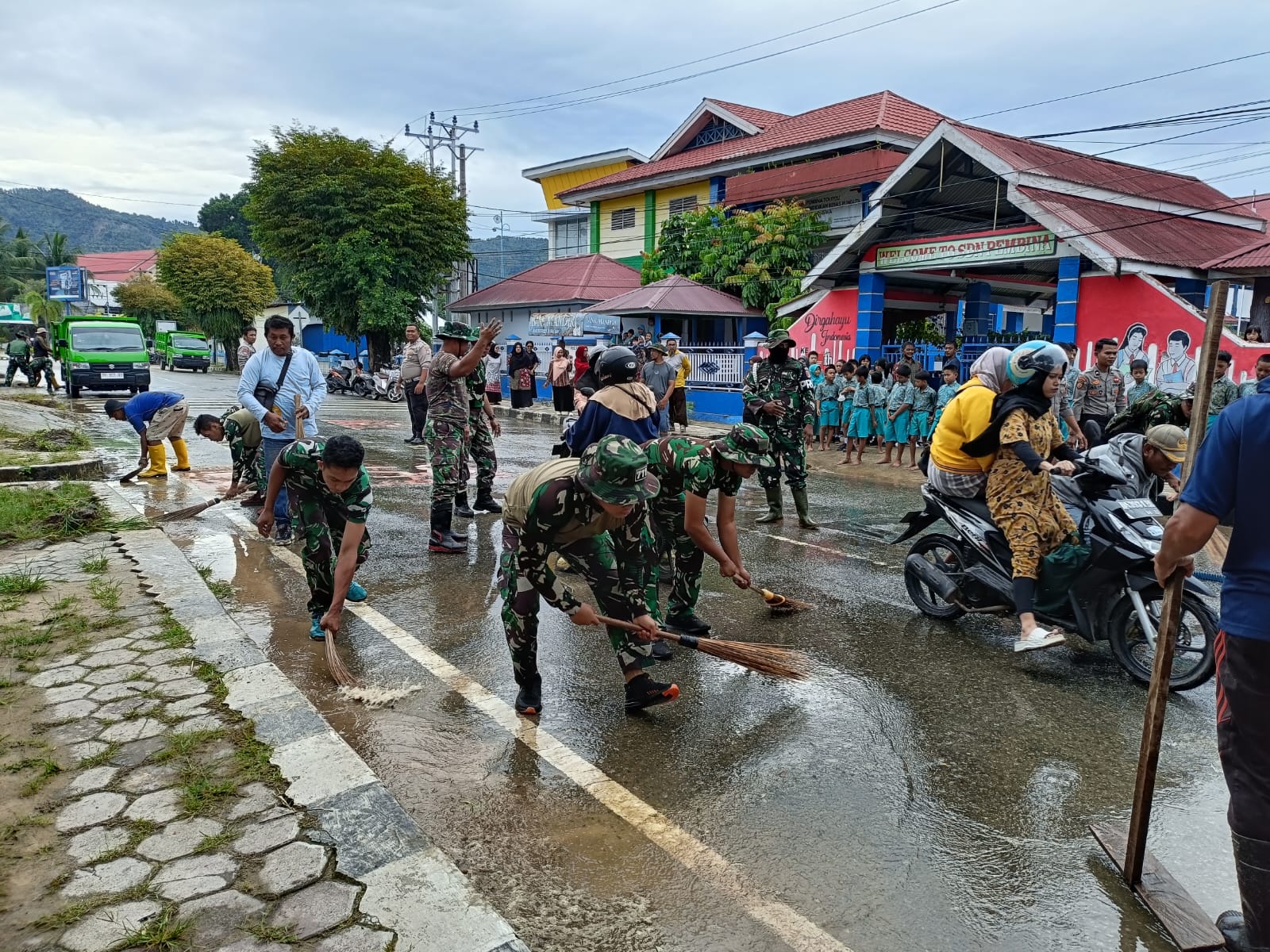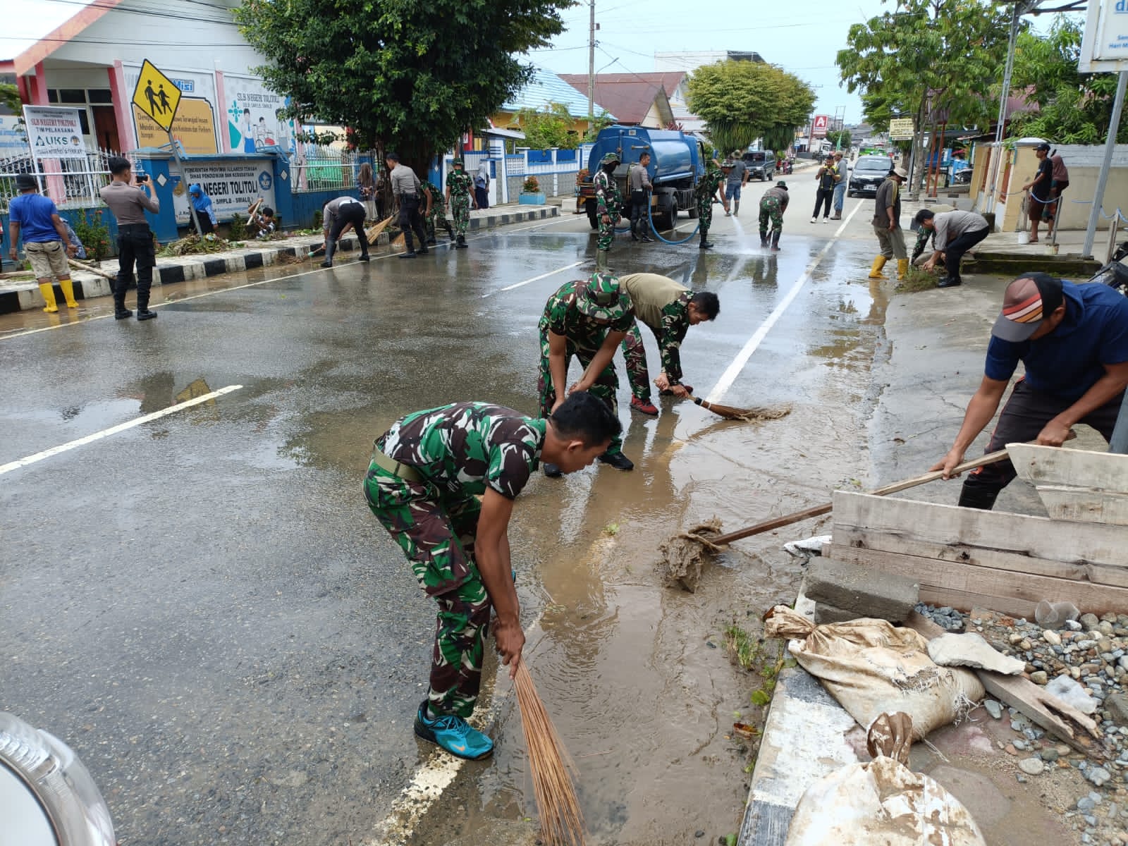 Pasca Banjir, Prajurit TNI Kodim 1305/BT Gerak cepat Laksanakan Kerja Bakti Masal