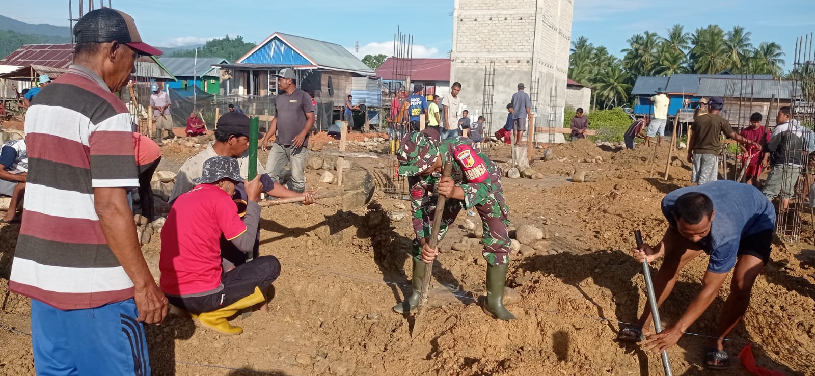 Kodim1305/BT, Sulteng | Kabartoday.id – Meski mengunakan alat seadanya, pengerjaan pengalian lubang pondasi untuk pembangunan Masjid Rahmatulah dilakukan dengan penuh semangat oleh Babinsa bersama masyarakat.