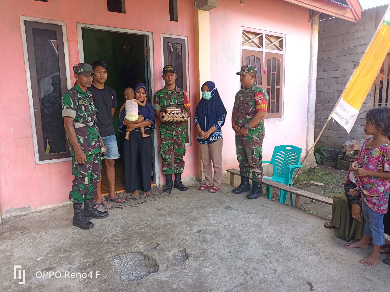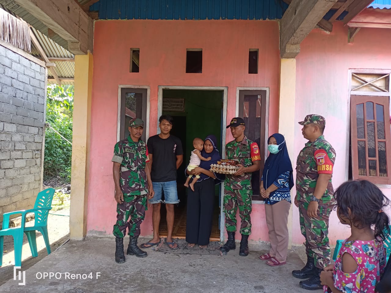 Buol, Sulteng | Kabartoday.id – Babinsa Domak Mekar bersama Danramil 1305 -07/ Bunobogu menyalurkan bantuan asupan makanan tambahan kepada anak stunting Nurasisa (2) yang berada di Desa Domak mekar kecamatan bunobogu, kabupaten Buol, (14/09/2023).
