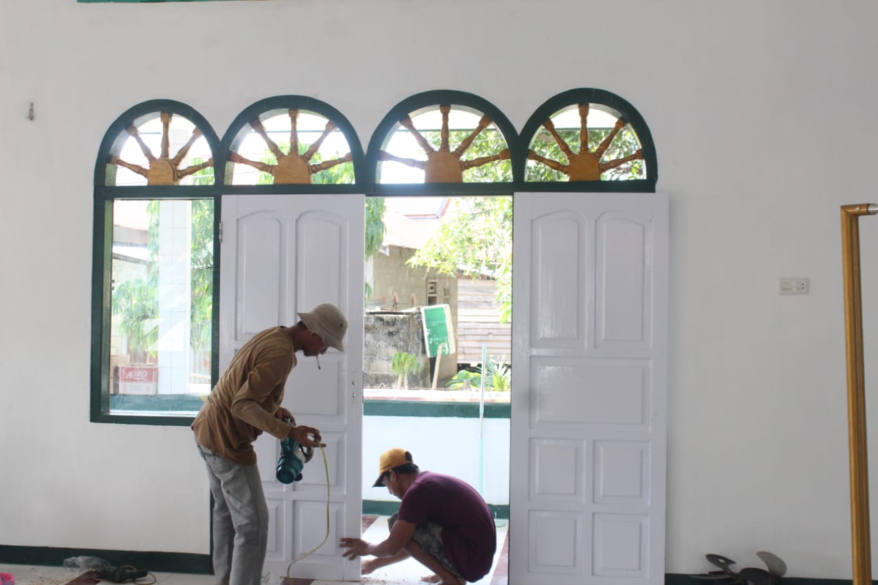 Dengan ringan hati dan penuh semangat usai sholat Jumat Berjamaah kekompakan yang tinggi kembali terlihat jelas yang dilakukan anggota Satgas TMMD 118 dan warga memasang pintu utama bangunan mesjid.