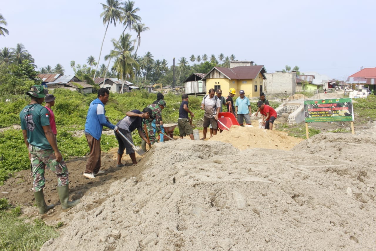 Penimbunan dilakukan oleh tim Satgas TNI Manunggal Membangun Desa (TMMD) 118 Kodim 1305/BT sudah dilakukan di kanan kiri jembatan.