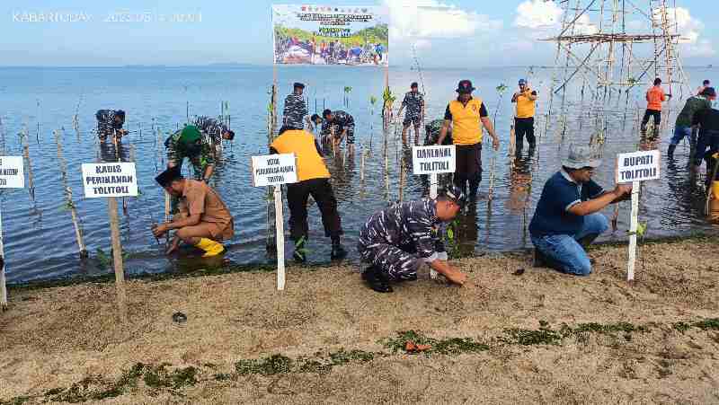 Tolitoli, Sulteng | Kabartoday.id – Puncak Penanaman Mangrove Nasional secara serentak di seluruh Jajaran TNI di Indonesia juga turut diikuti oleh TNI Pangkalan TNI Angkatan Laut Tolitoli, Kodim 1305/BT ini, mengangkat tema “MANGGROVE FOR BEETTER LIFE”
