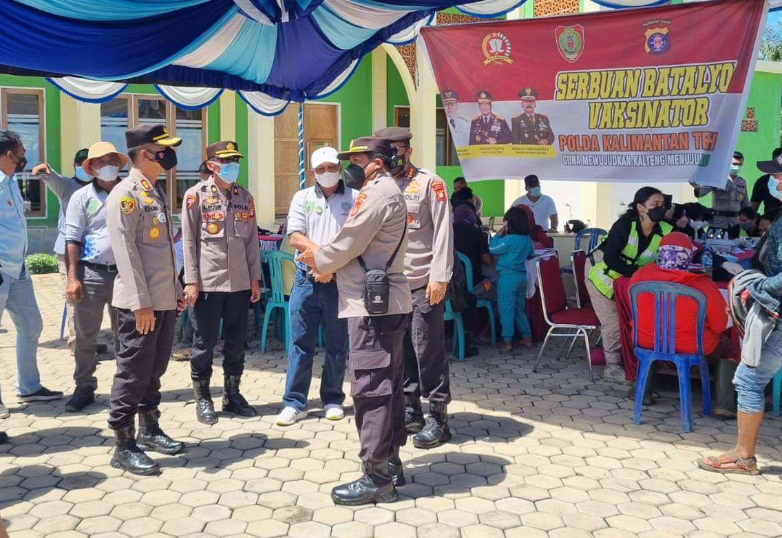 SUYANTO | PULANG PISAU | KALTENG – Sebanyak 1000 dosis vaksin disiapkan Polda Kalteng dalam Gerai Vaksin Presisi vaksinasi massal dalam program Serbuan Batalyon Vaksinator, Sabtu (06/11) pagi. Selain dosis pertama, Polres juga menyiapkan dosis kedua. Vaksinasi ini sebagai upaya percepatan vaksinasi untuk membentuk herd immunity.