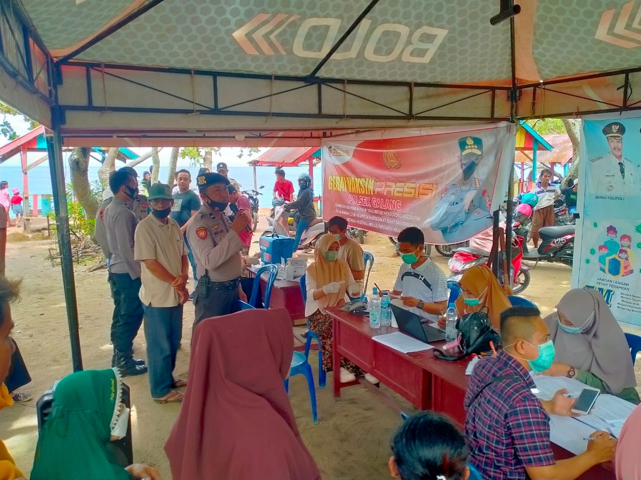 Polres Tolitoli Bersama Vespa Toliz Club Gelar Vaksinasi di Pantai Wisata Lalos