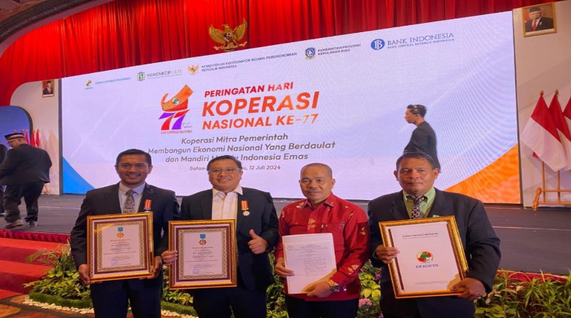 Penghargaan yang di berikan kepada Akhmad Sumarling dalam peringatan hari koperasi nasional ke-77 yang di gelar di kota Batam, Kepulauan Riau, Jumat (12/7).