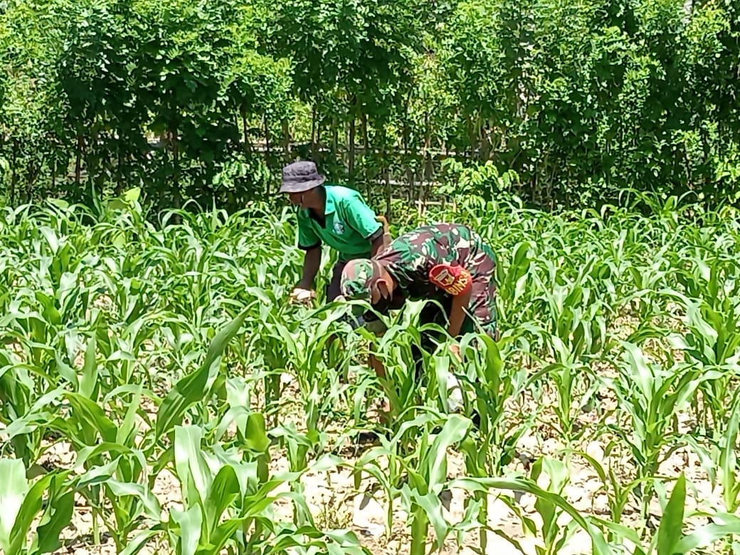 “Kegiatan pendampingan penyemprotan pupuk pada tanaman jagung bersama masyarakat yang sedang Babinsa kerjakan merupakan wujud kemanunggalan TNI bersama rakyat,” katanya.