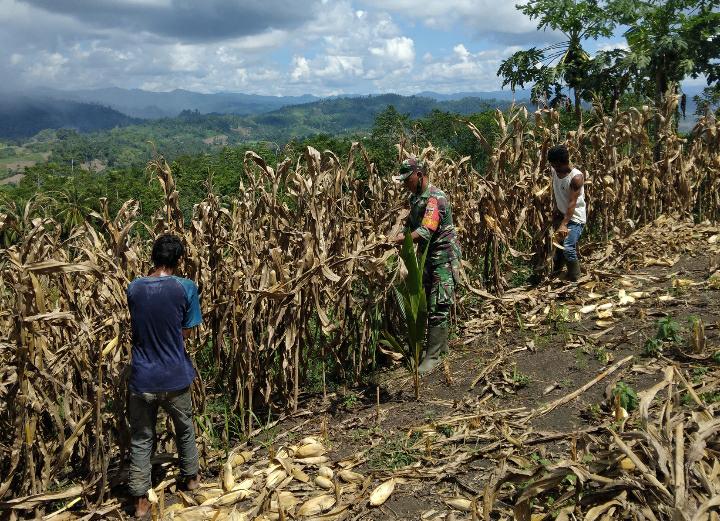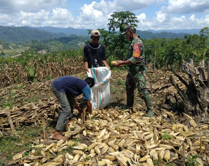 Hal inilah yang terus di dorong para Babinsa Bukamog wilayah Koramil 1305-09/Bokat Koptu A. Tampilang dalam membantu warga binaan memanen jagung, diwilayah teritorial kodim 1305/BT, dalam menjaga hanpangan di Desa Bukamog Kecamatan Bokat, Kabupaten Buol, Sabtu (12/08/2023).