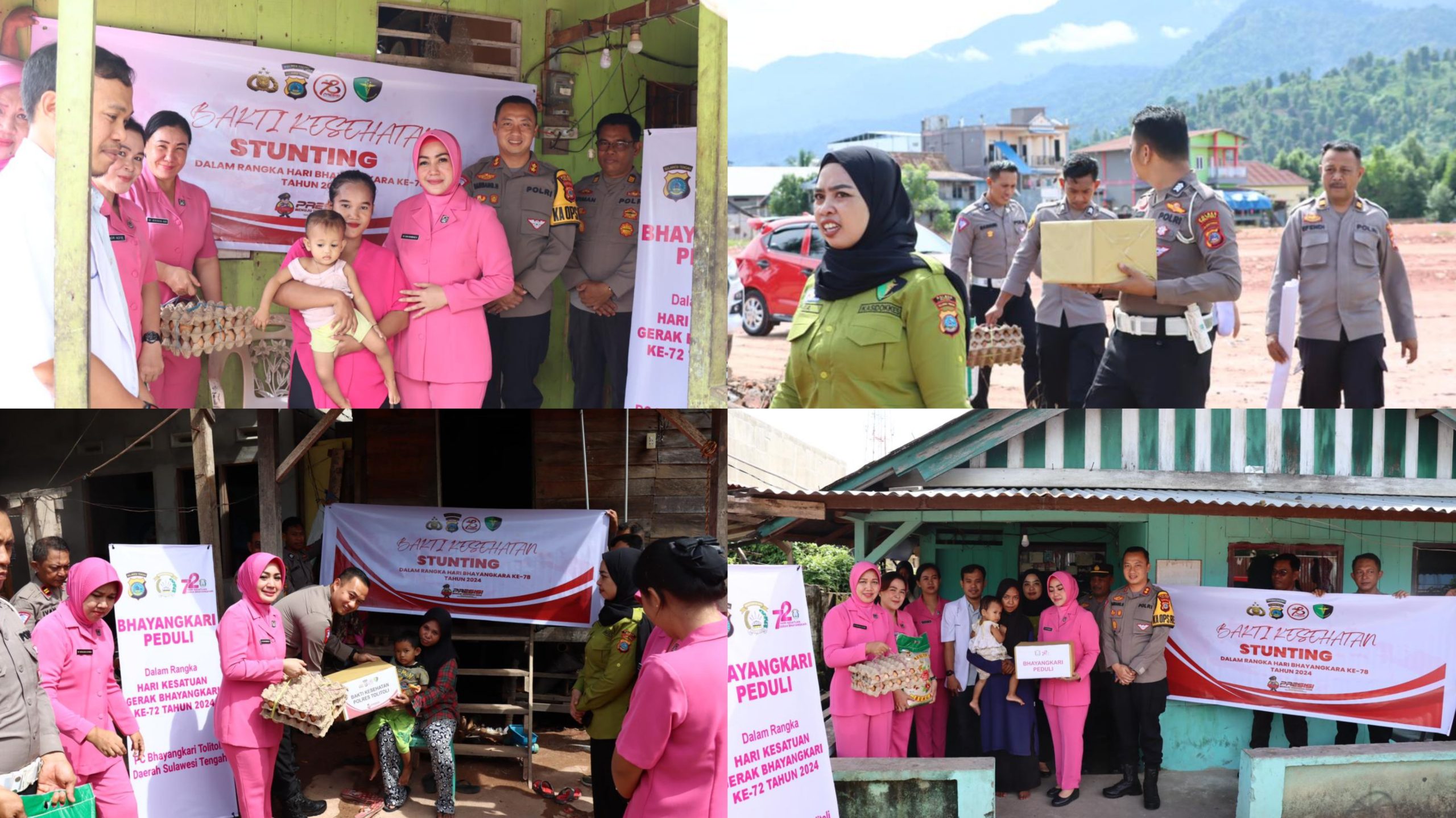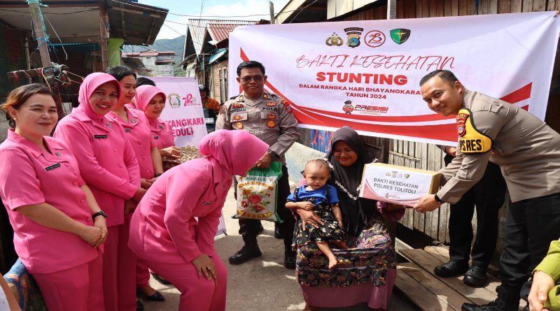Tolitoli, Sulteng | Kabartoday.id – Dalam rangka memperingati HUT Bhayangkara ke 78 yang jatuh pada tanggal 1 Juli, Kapolres Tolitoli AKBP Bambang Herkamto, S.H. didampingi oleh Ibu Ketua Bhayangkari Cab.Tolitoli Ny. Dian Bambang Herkamto memimpin langsung kegiatan bakti kesehatan Stunting, Kamis (20/06/2024) Pagi.
