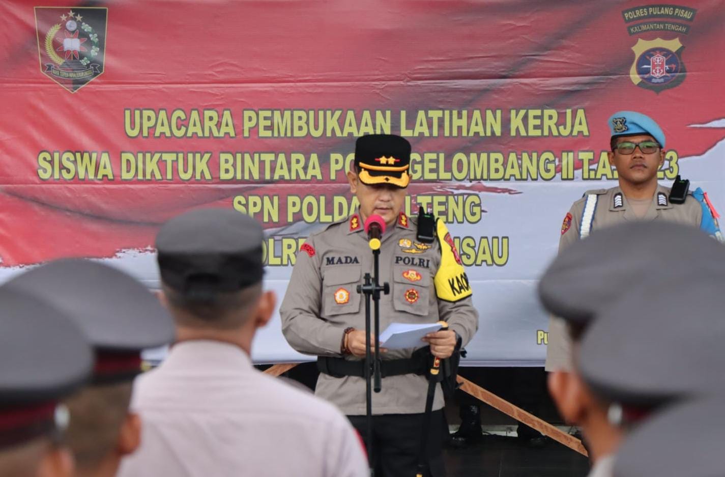 SUYANTO | PULANG PISAU | KALTENG – Kepolisian Resor Pulang Pisau, Polda Kalimantan Tengah (Kalteng) menggelar upacara pembukaan Latihan Kerja (Latja) Siswa Diktuba Polri tahun 2023 SPN Polda Kalteng di halaman Mapolres, Senin (13/11/2023) pagi.