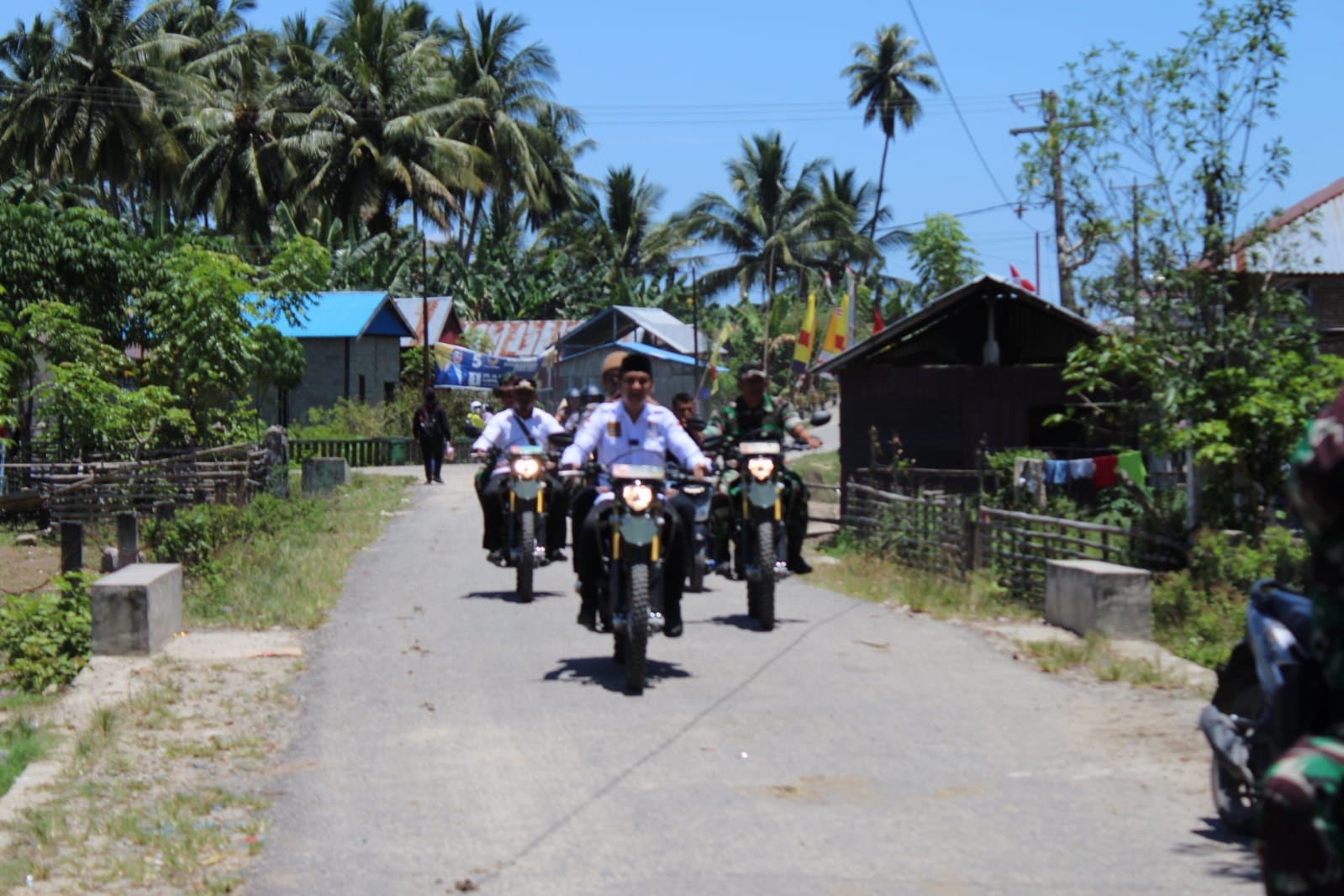 Dengan menaiki motor trail milik kodim 1305/BT Kolonel Inf Fifin Zudi Syaifuddin nampak kelihatan gagah. Seperti pemotor cross kelas atas mengemudikan kendaraannya pergi bersama-sama dengan tim bagaikan Konvoi ke lokasi sasaran TMMD.
