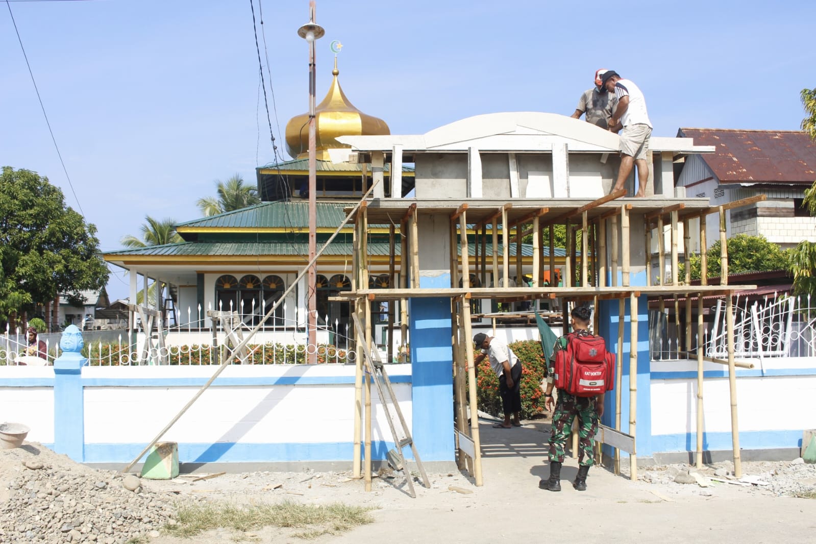 “sebelum memasuki masjid tempat ibadah bagi kaum muslim ini pertama yang dilihat adalah Gapura yang mewah. Dan diharapkan keceriaan dalam hati masyarakat akan membuat mereka nyaman beribadah,’ kata Letkol Inf Dedi Akhiruddin.