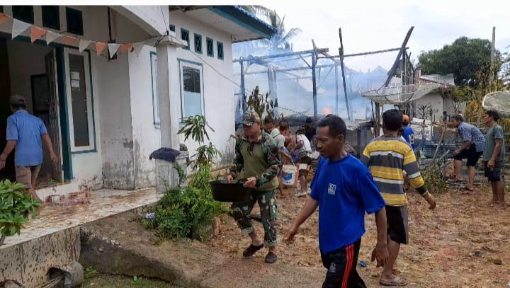 “Mendengar teriakan, warga setempat berbondong-bondong datang membantu memadamkan api serta mengamankan barang yang bisa diselamatkan, lebaran tersebut begitu cepat, kobaran api sudah merambat kebagian dinding-dinding ruangan rumah dan membakar seisi ruangan, yang mana rumah terbuat dari bahan kayu, atas kejadian tersebut kerugian materil sekitar 80 juta rupiah,” ungkap Letda Inf Ricky Poli.