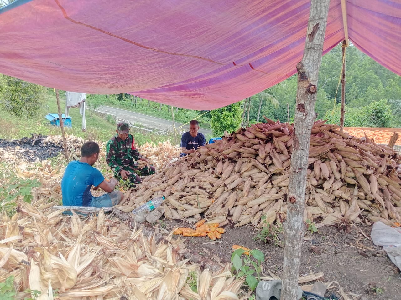 Buol — Keterlibatan aparat kewilayahan dalam mendukung sektor pertanian kembali terlihat melalui kegiatan yang dilaksanakan Koramil 1305-07/Bunobogu. Babinsa Desa Inalatan, Serda Duma, turun langsung ke lahan pertanian bersama Kelompok Tani Puncak Jaya dalam kegiatan panen jagung milik warga, Bapak Upal, di Desa Inalatan, Kecamatan Bunobogu, Kabupaten Buol. Minggu, 26/04/26.
