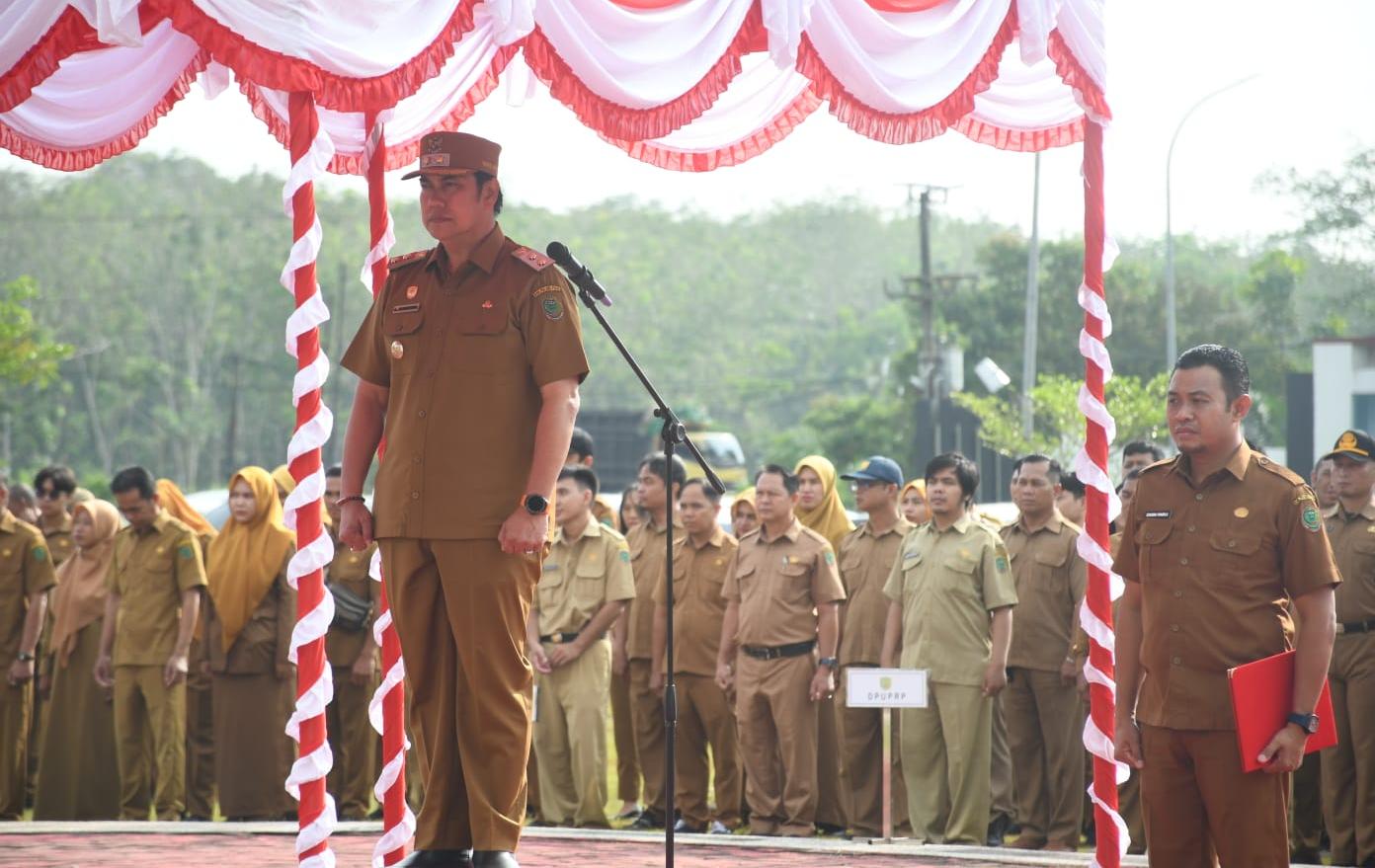 Kegiatan yang berlangsung di halaman Kantor Bupati Pulang Pisau ini berjalan khidmat dengan mengusung tema “Sinergi Pusat dan Daerah Membangun Nusantara Menuju Indonesia Emas 2045.”
