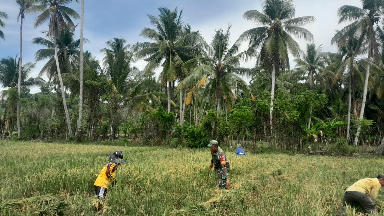 Sukseskan Ketahanan Pangan, Babinsa Koramil 07 Bunobogu Bantu Petani Panen Padi