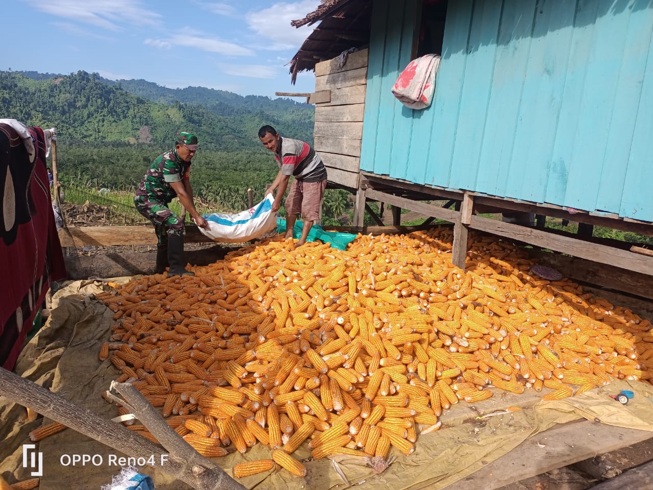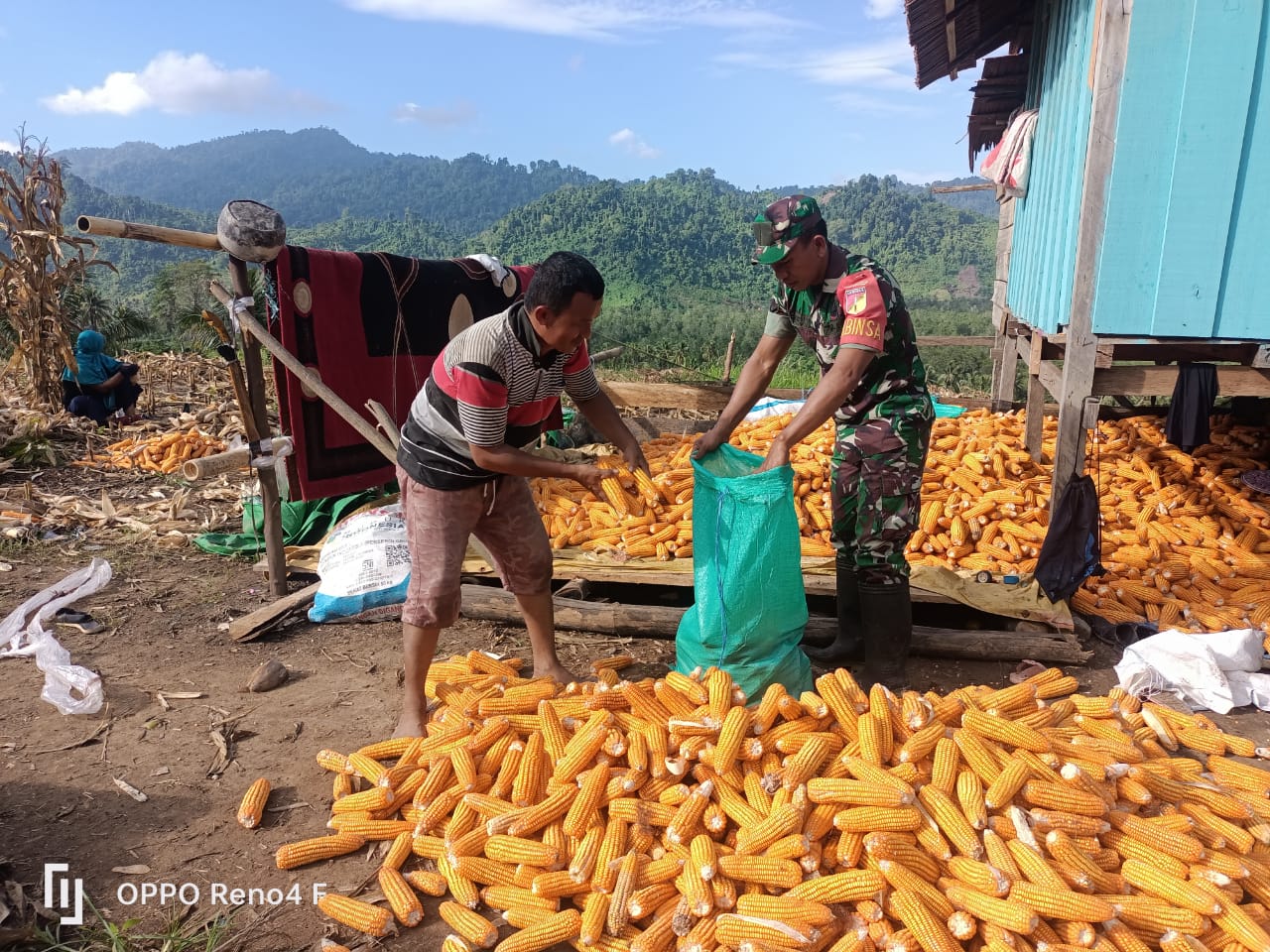 Hal ini menjadi dorongan para Babinsa Koramil 1305-07/Bunobogu Serda Duma mengatakan bahwa hari ini dirinya membantu warga binaan panen tanaman Jagung.