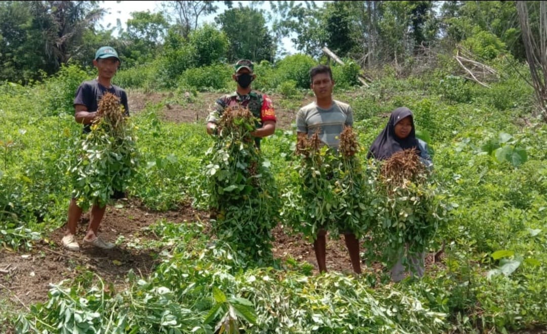 Panen kacang tanah yang dilakukan Babinsa di lahan milik bapak Syamsudin sebagai bentuk perhatian TNI AD khususnya Kodim 1305/BT dalam menjaga Ketahanan pangan.