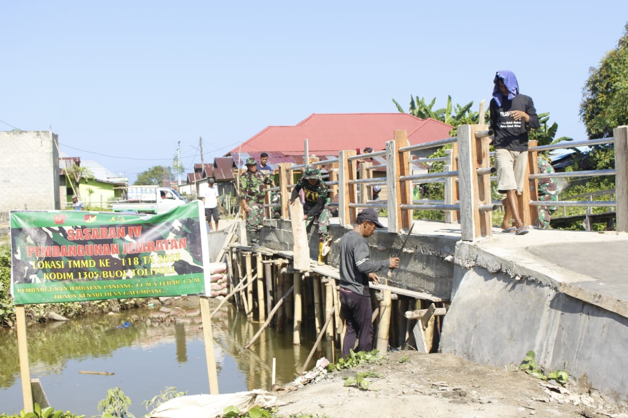 Ia menambahkan, anggota Satgas TMMD Reguler Ke-118 Kodim 1305/BT, bersama dengan warga dalam mengerjakan jembatan penuh kerja keras dan juga kecermatan.
