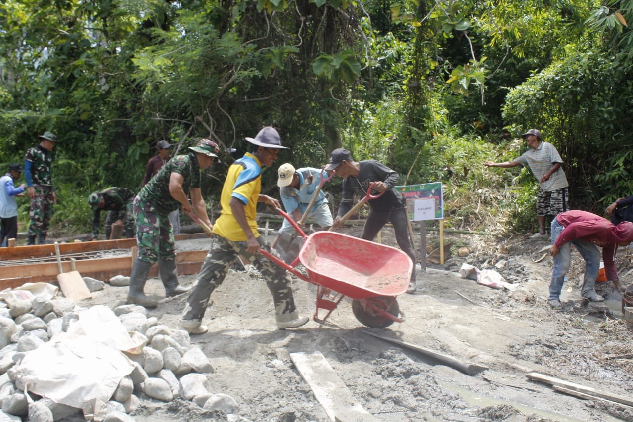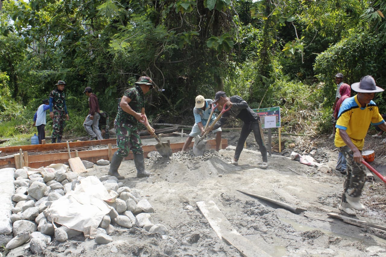 Tak kenal lelah dan waktu, di tengah panasnya trik Matahari tak menyurutkan semangat Satgas TMMD 118 serta masyarakat yang tergabung didalam kegiatan ini untuk segera memulai tahapan pembuatan plat dueker.