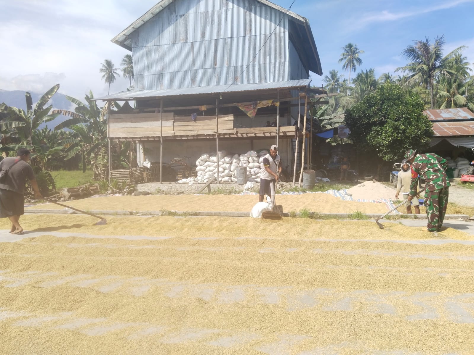 Tak Perna Lelah, Babinsa Koramil 10 Damsel Bantu Jemur Padi