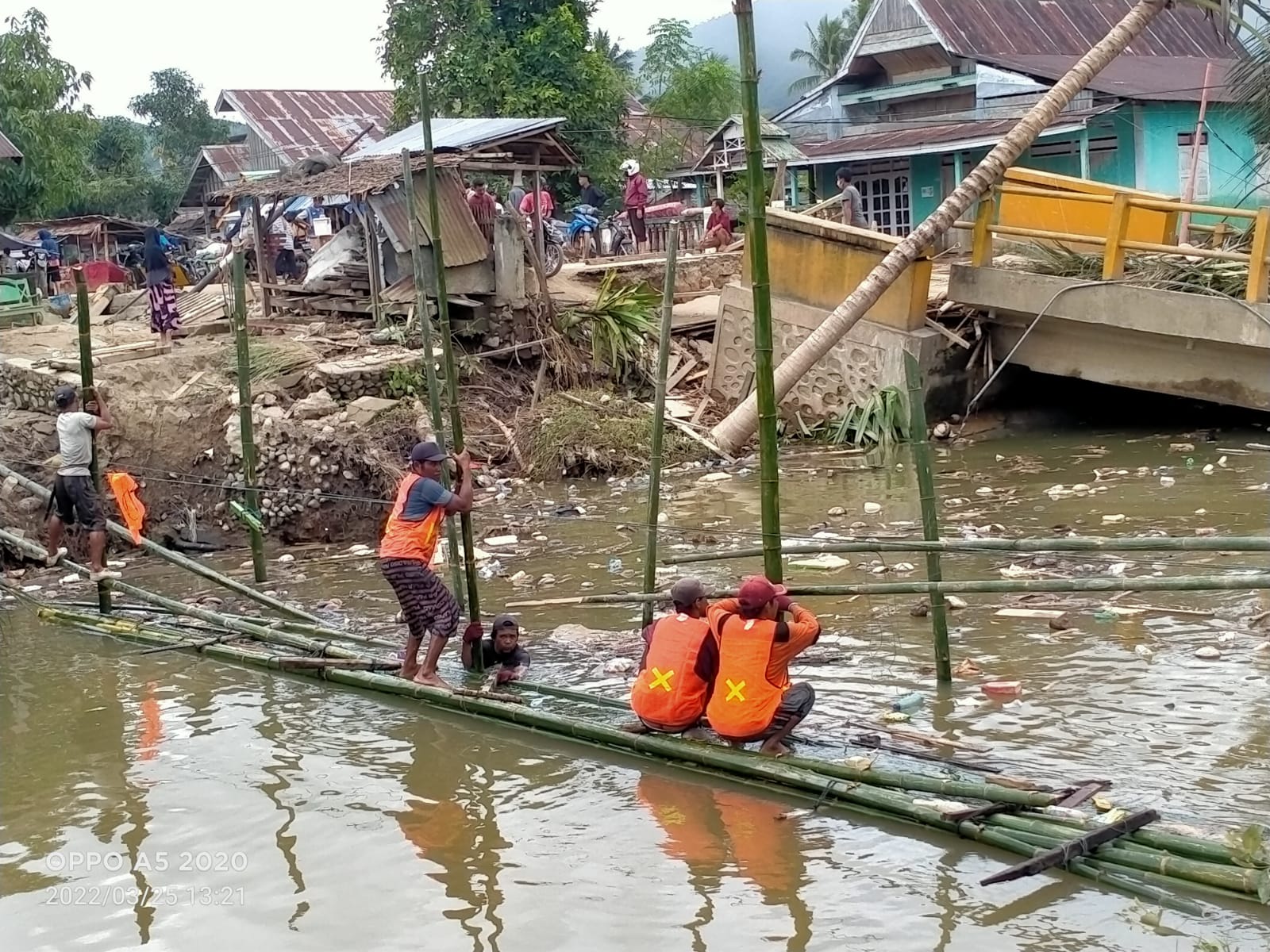 “Pembuatan jembatan dari bambu dikampung kuala ini dikhususkan untuk kendaraan bermotor roda dua dan pejalan kaki, dan kami juga langsung melakukan pembersihan runtuhan jembatan yang ada di desa Aung, agar aliran air bisa keluar tampah hambatan,” Pungkas Taopik Andriyadi.