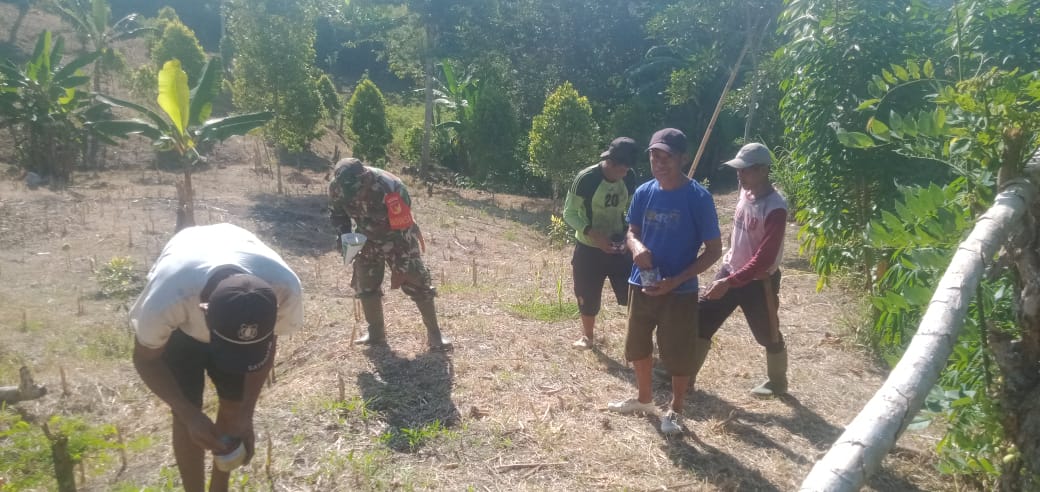 Kodim1305/BT, Sulteng | Kabartoday.id – Babinsa Botugolu, Koramil 1305-07/Bunobogu Koptu Moh Syarif melaksanakan kegiatan pendampingan Hanpangan dengan membantu petani penanaman jagung.