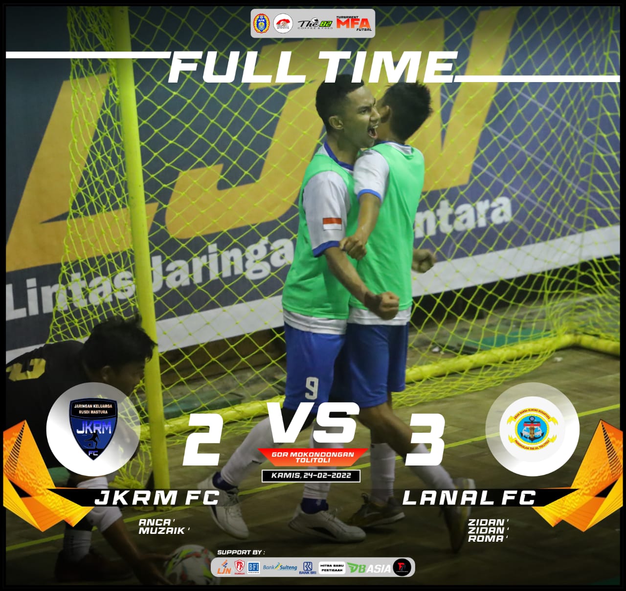 Hingga babak kedua berkahir pada Pukul 23:45 Wita Tim JKRM FC harus mengakui kehebatan Tim Futsal Lanal Tolitoli Dengan Skor 3 vs 2.