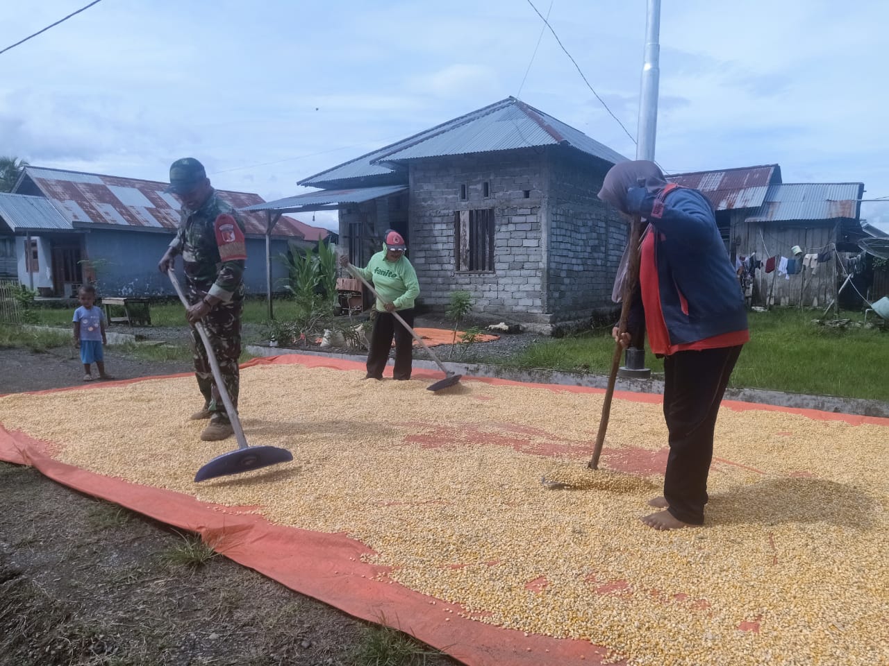 Tingkatkan Hanpangan, Babinsa Koramil 09 Bokat Serda Dewa Bantu Jemur Jagung